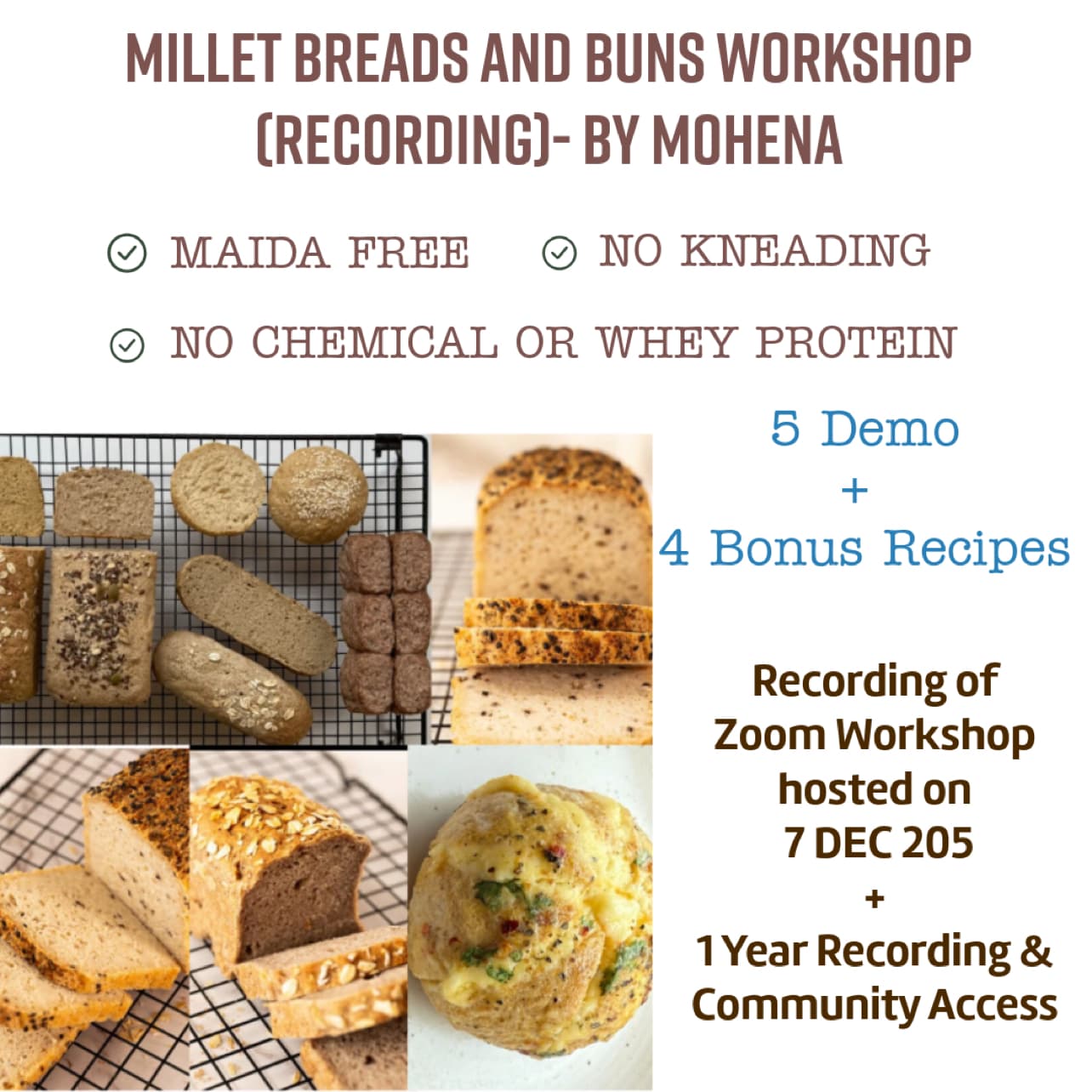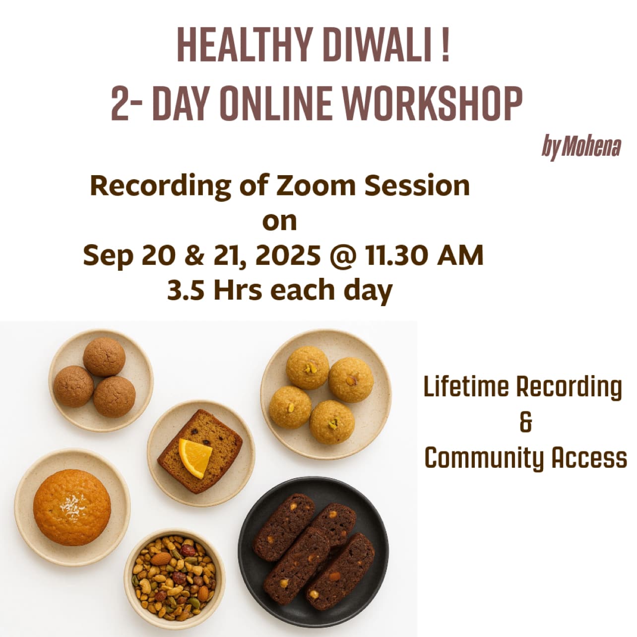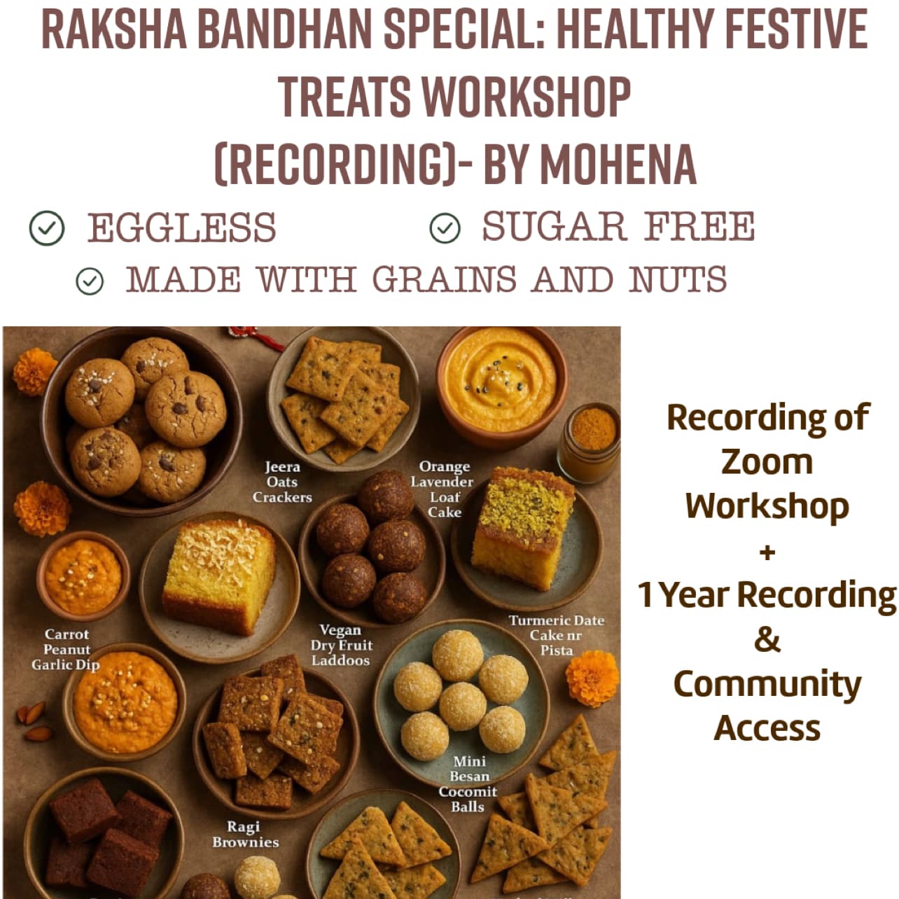 Learn to bake 1) Gluten-free walnut brownies 2) Eggless almond ragi brownies 3) white chocolate blondies 4) Rajgira masala cookies 5) Jowar dates cookies 🎂 6)Vegan fruit & Nut Cake 7) Gluten free Apple & Cinnamon cake 8)Sugar free Dates & Lemon Cake 9) Gluten free Pistachio & Fig cake 10) Gluten free Mango & Custard Cake.