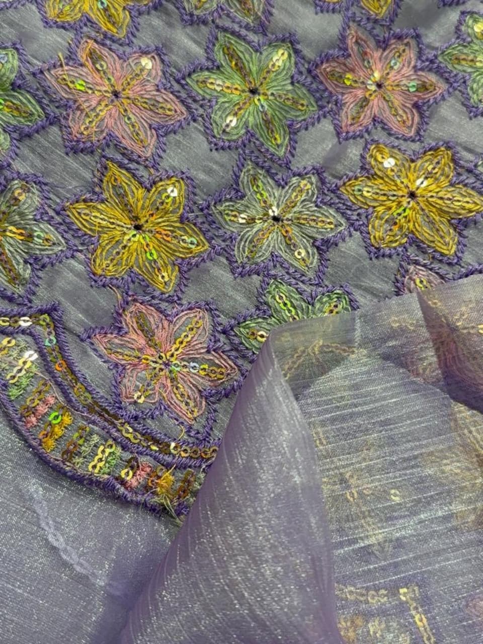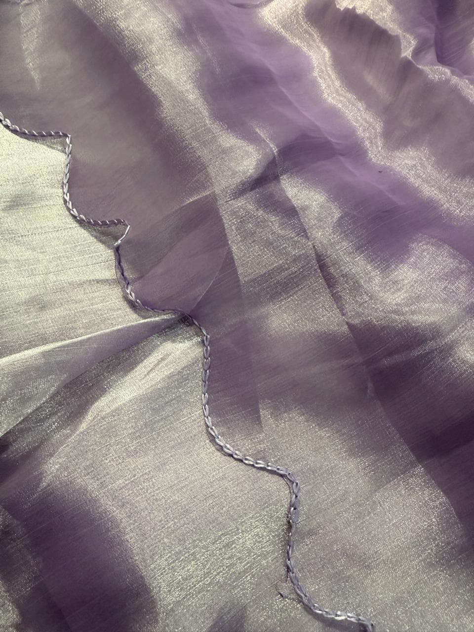 Fabric - Organza Color - pastel violet Border - scallop thread work Blouse - embroidery blouse Free shipping 2 in stock Dispatch in 7-14 working days