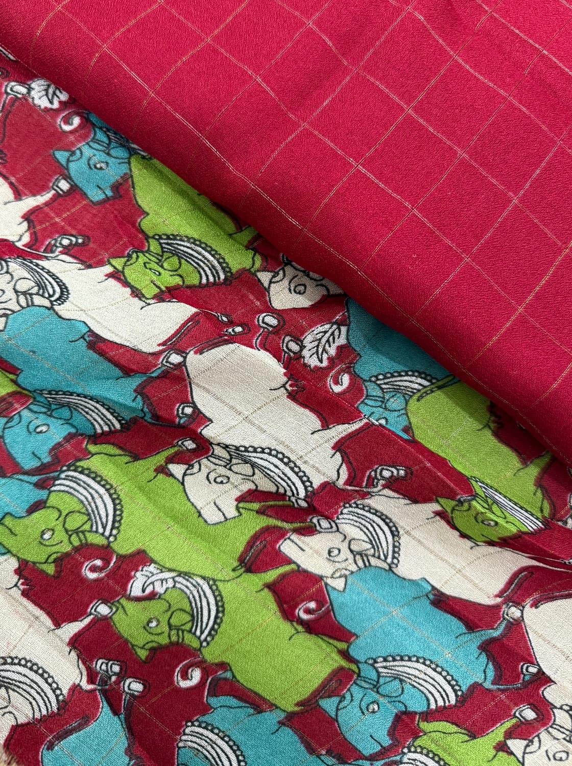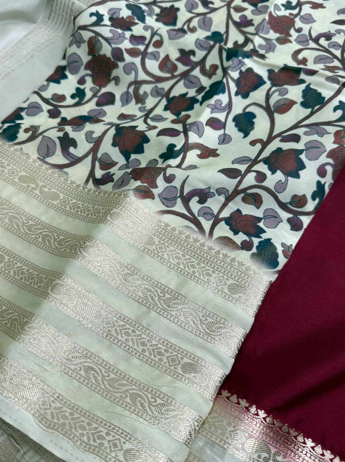 Fabric - Soft crepe silk Color - Maroon Border- bentox Blouse piece - printed Flow - lovely flow,sits on body like butter SOLD OUT