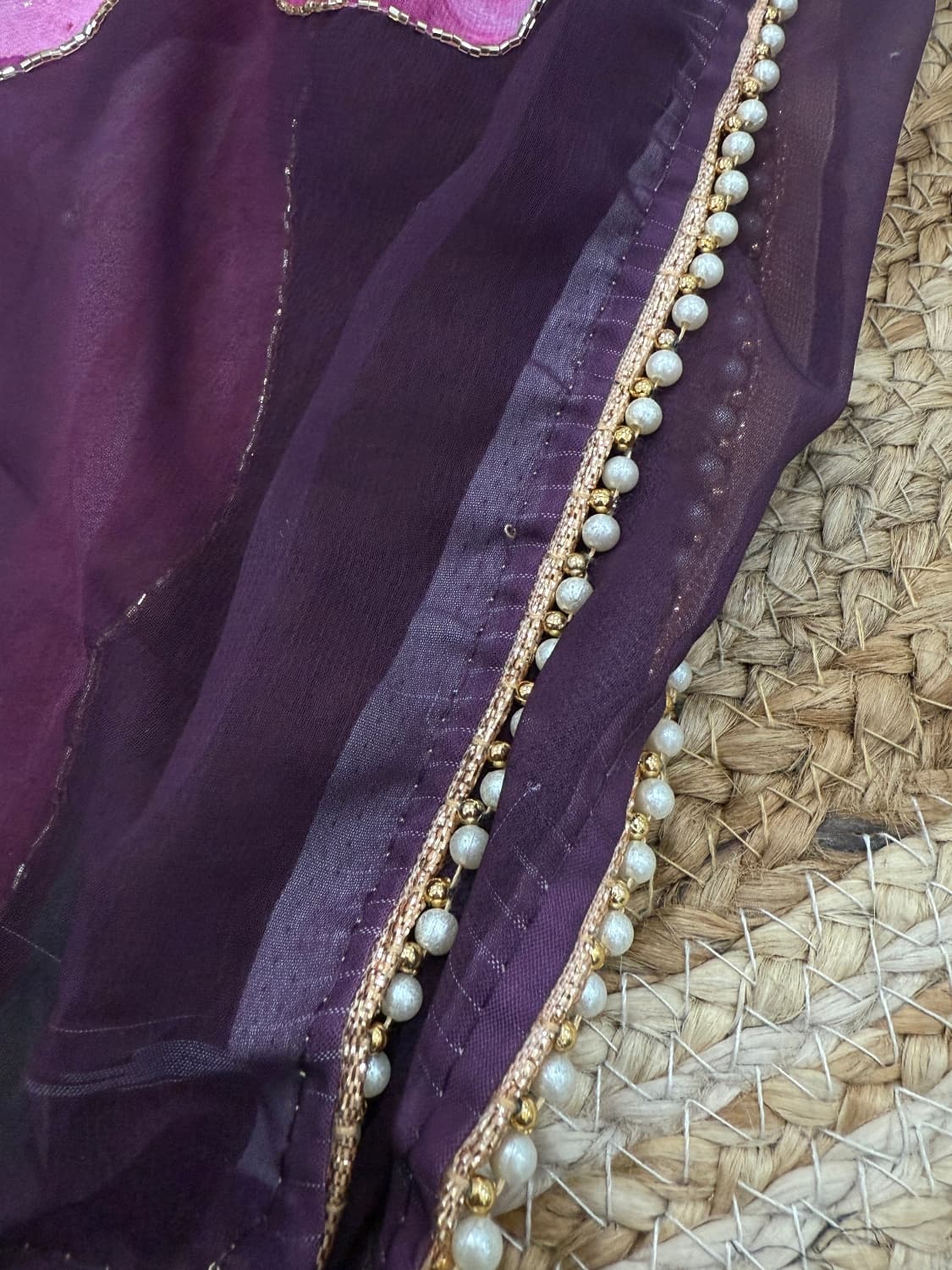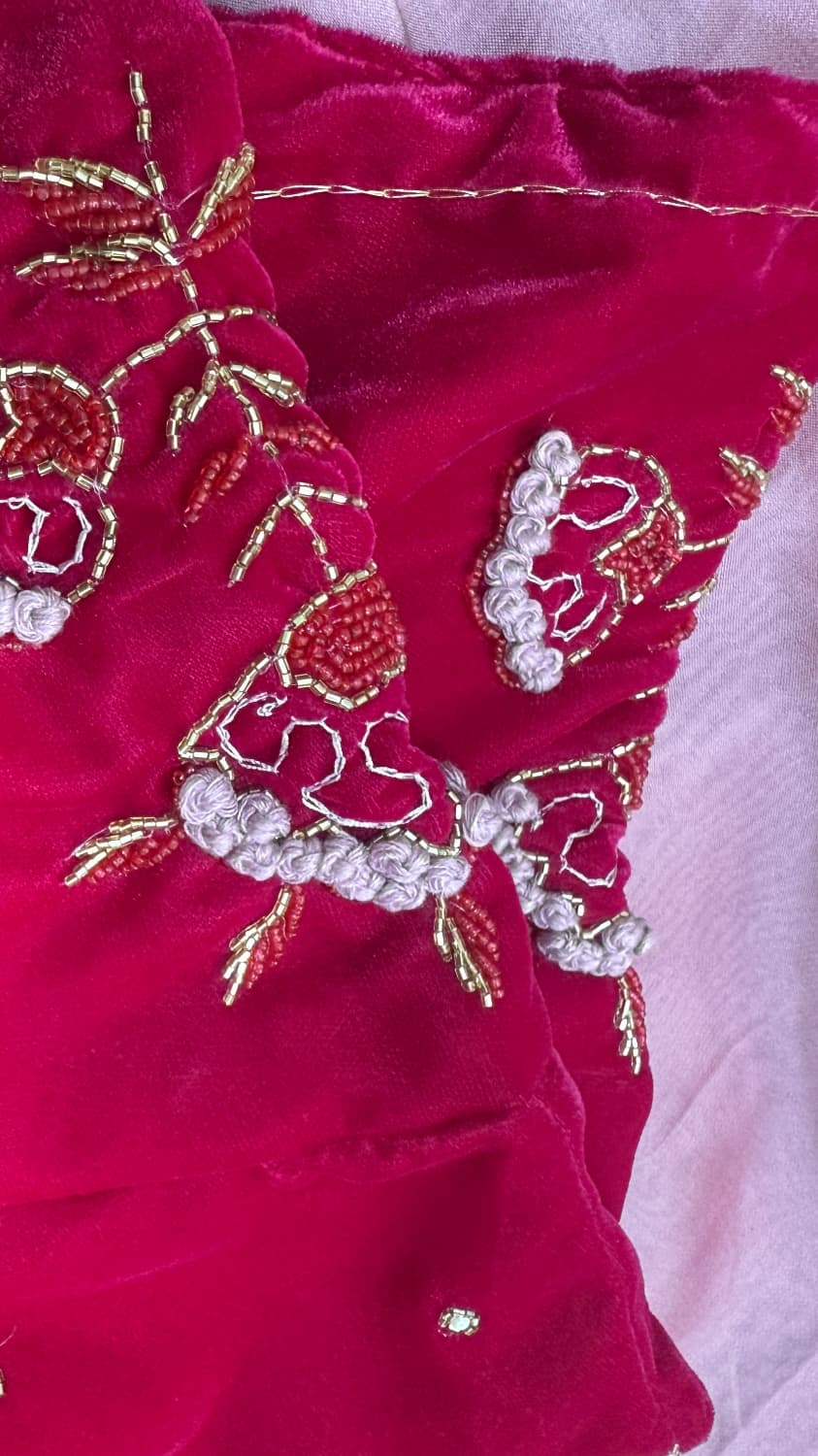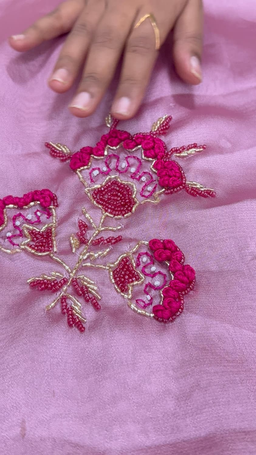 Fabric - Satin georgette Color - mauve pink Border - scallop kadhana work Blouse - Stitched velvet blouse Pleates will flow the way you tell 1 in stock Dispatch 7 -14 working days
