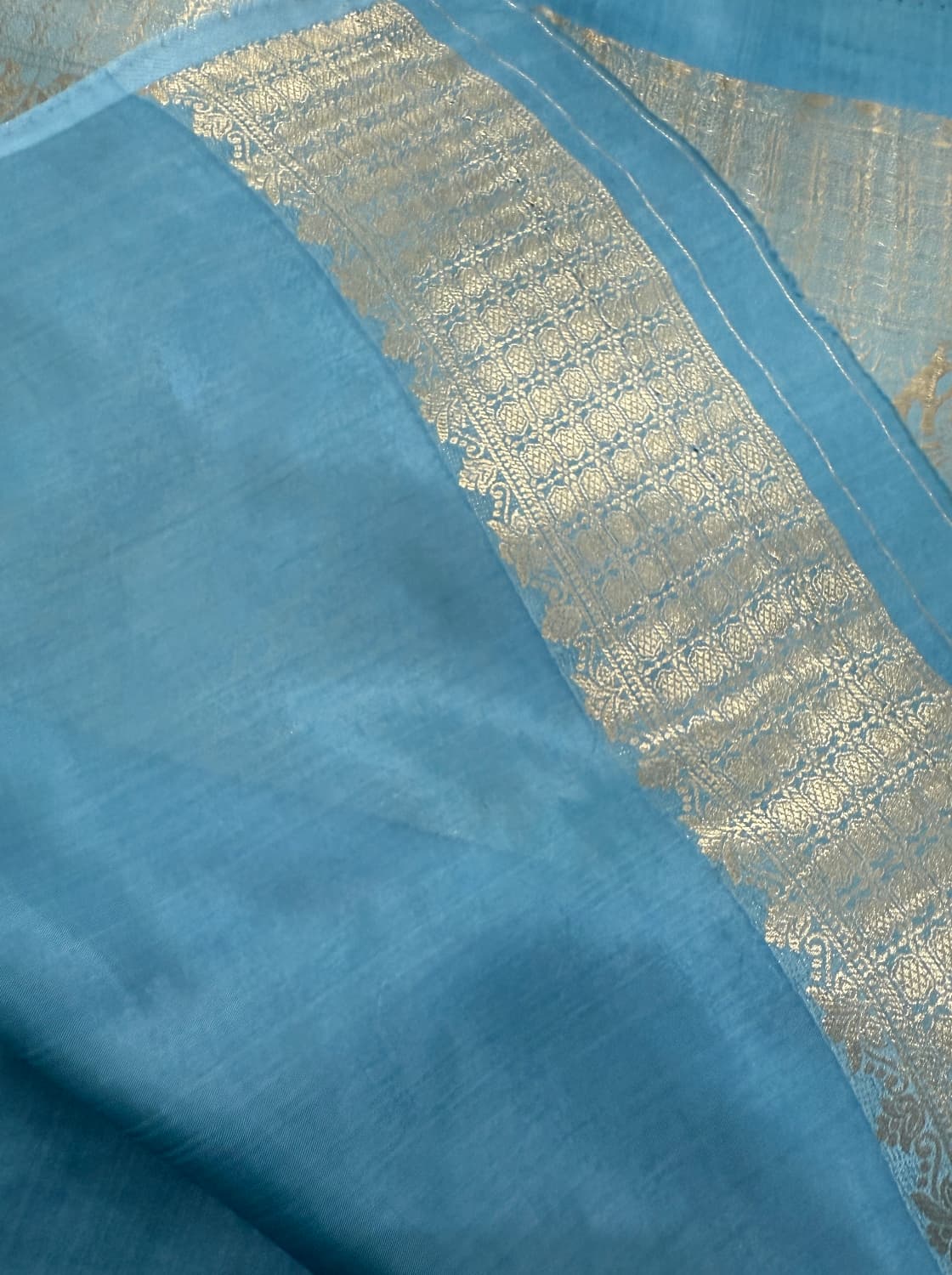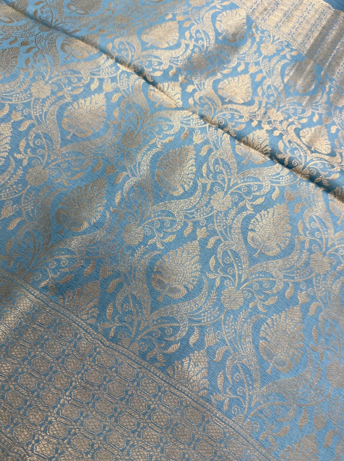 Fabric - banaras Color - blue Border - zari Blouse - embroidery Pleates will flow the way you tell 1 in stock Dispatch 7 -14 working days