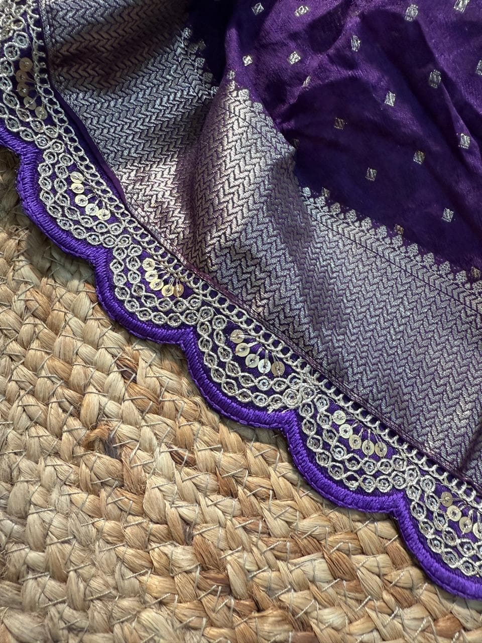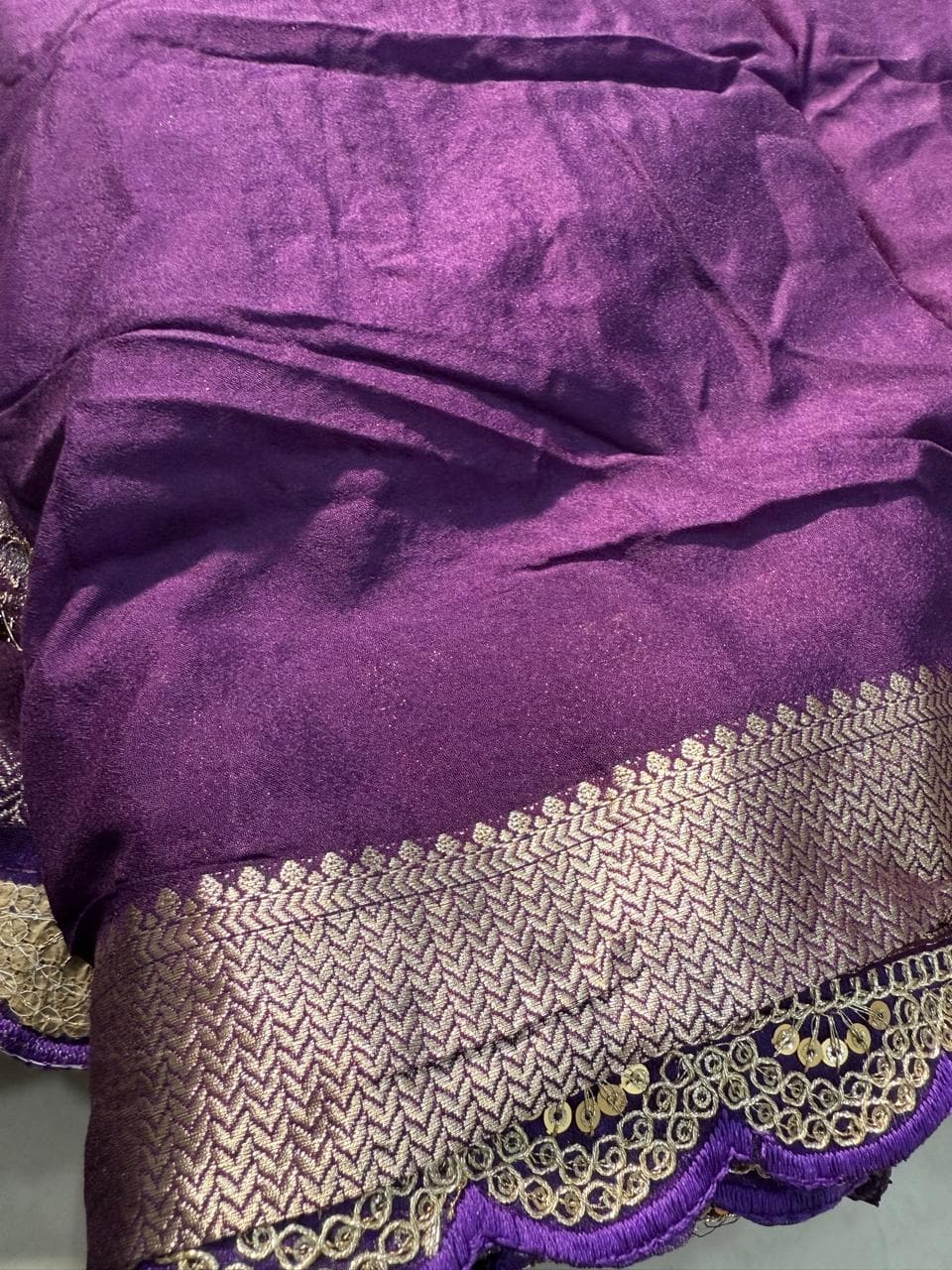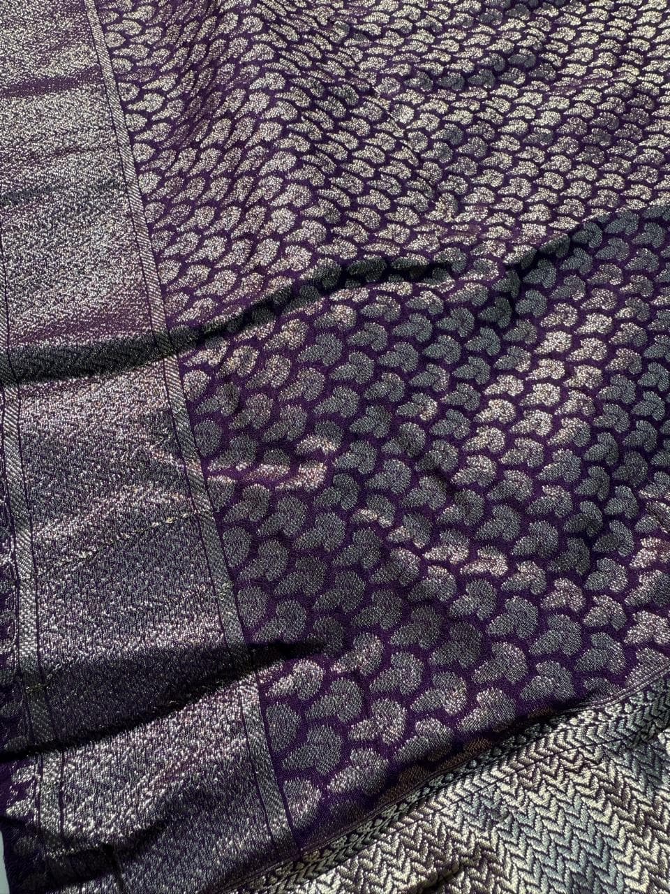 Fabric - pure khadi georgette Color - purple Border - cut work scallop designer border Blouse - plain purple blouse with scallop designer border Pleates will flow the way you tell 1 in stock Dispatch 7 -14 working days