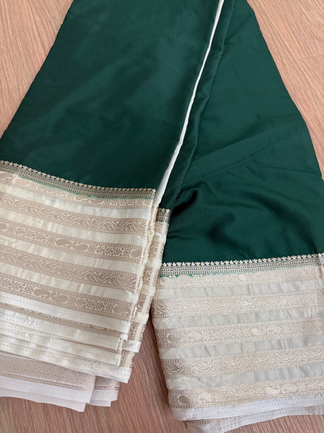 Fabric - Pure crepe Color - off white Border - zari Blouse - Stitched blouse bandhani Pleates will flow the way you tell SOLD