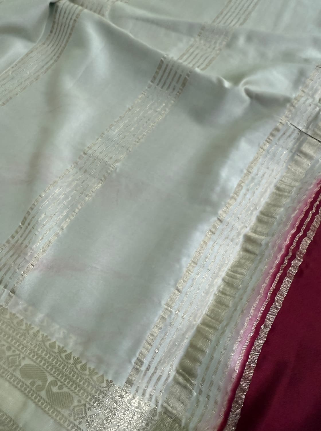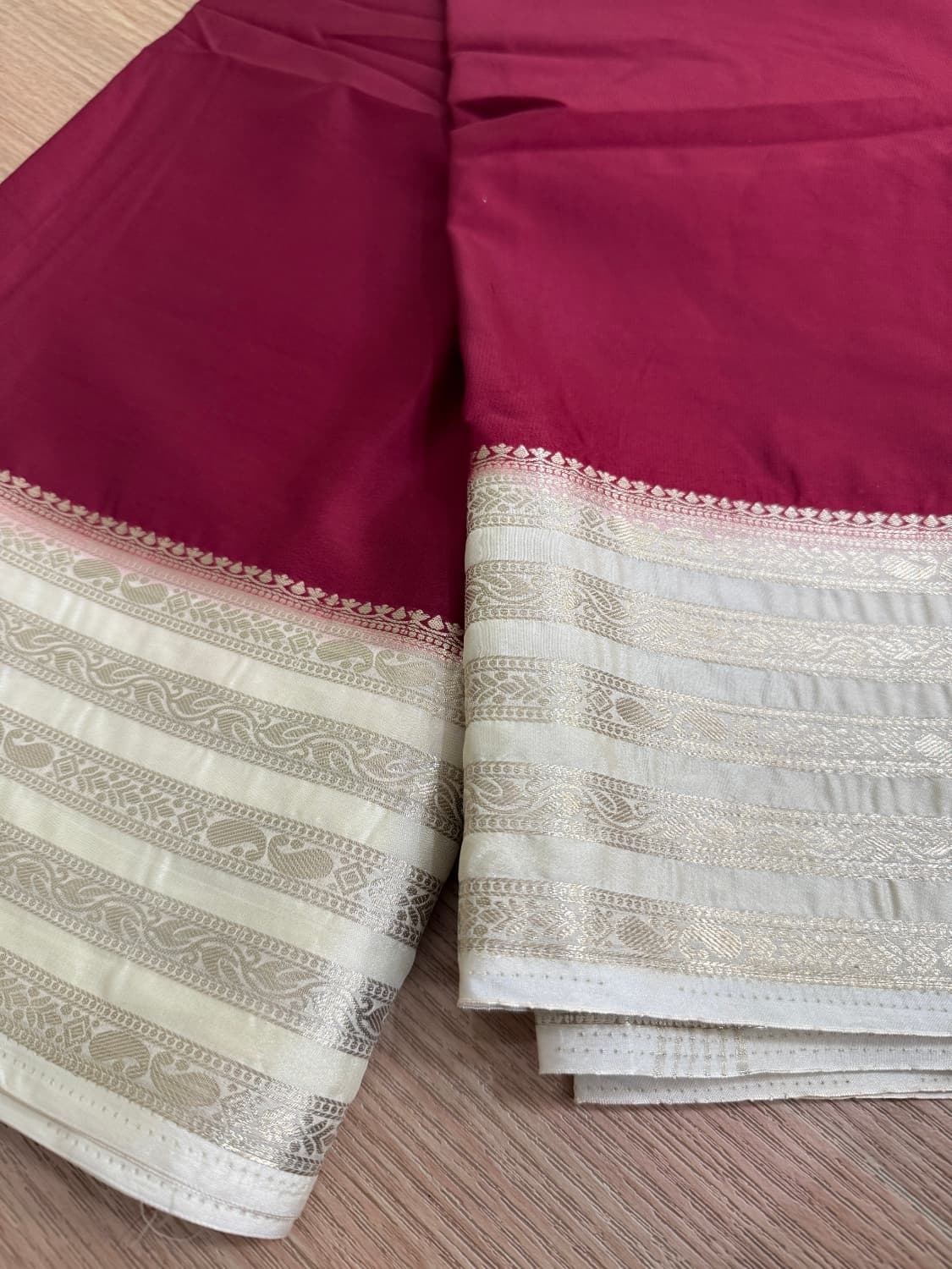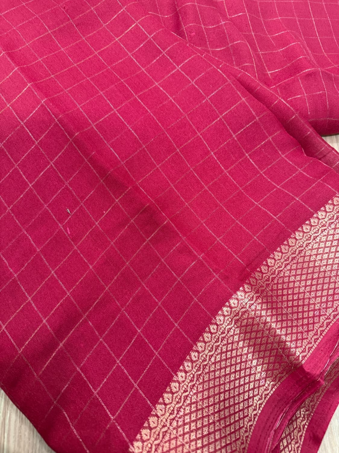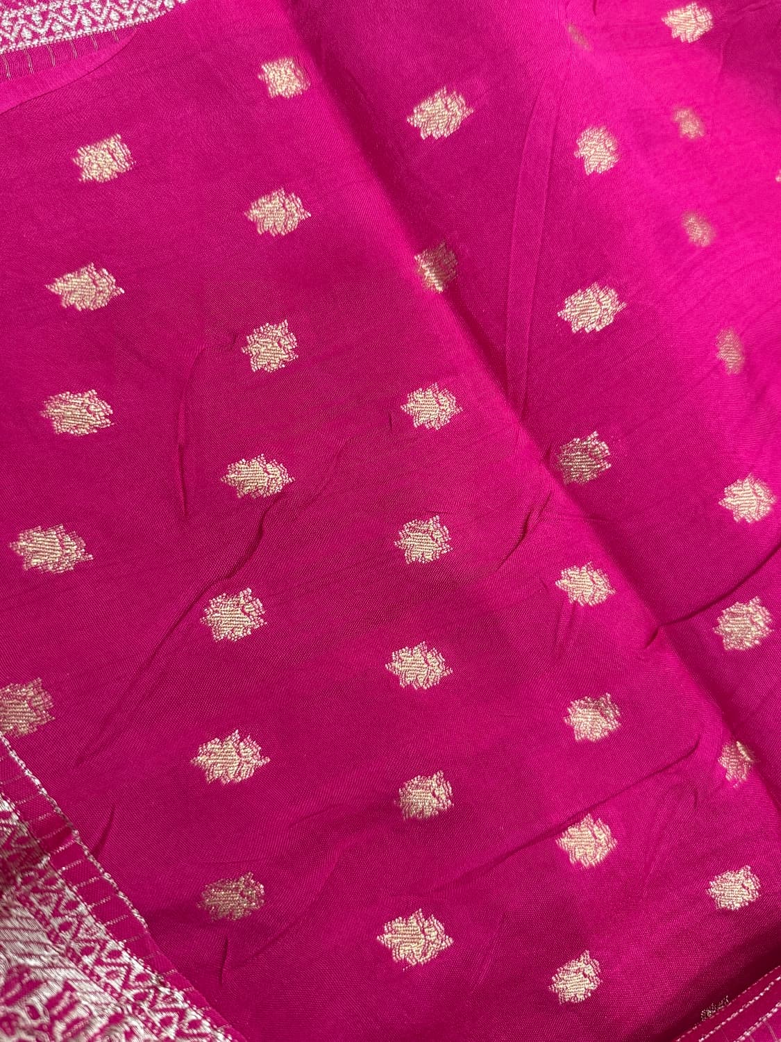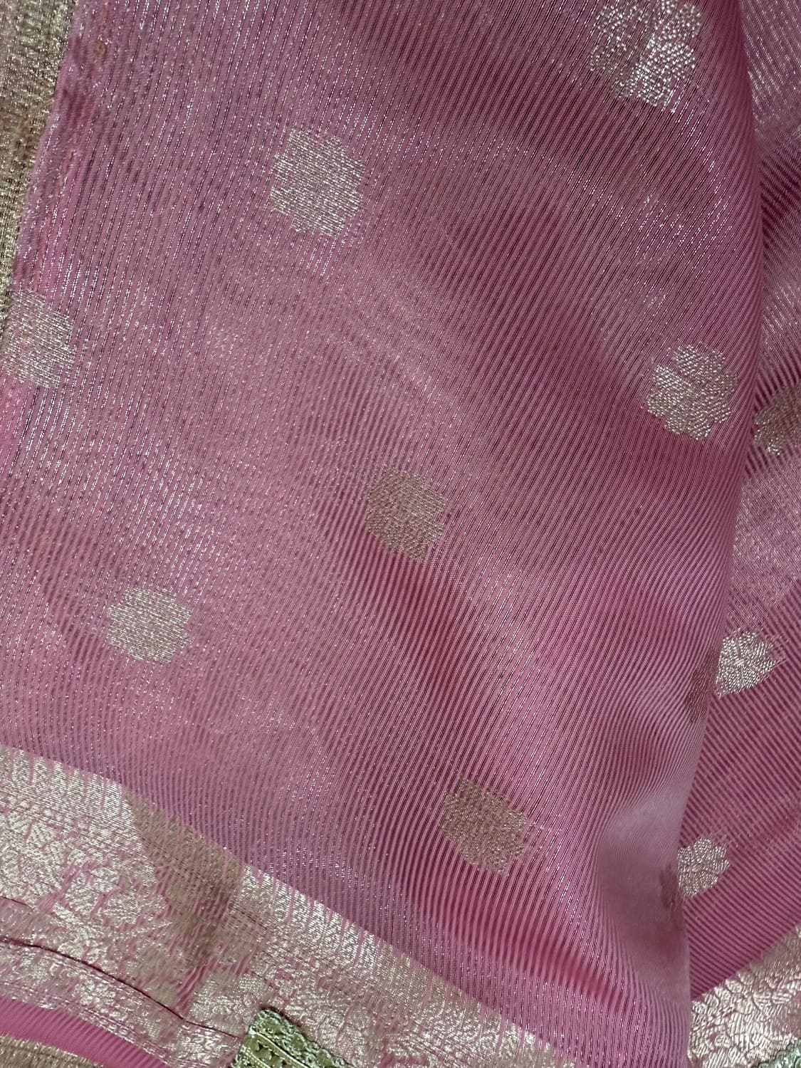 Fabric - Soft Banara Color - Rani pink Border - zari Blouse - butta Pleates will flow the way you tell Sold out