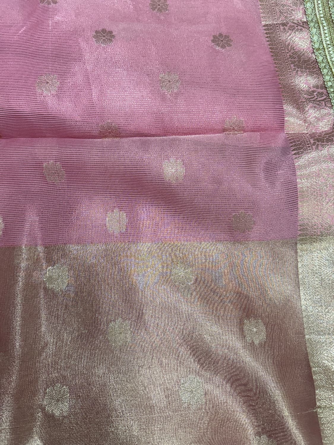 Fabric - Rich organza Color - Blush pink Border - zari with designer border Blouse - light pink 1 in stock Dispatch 7 -14 working days