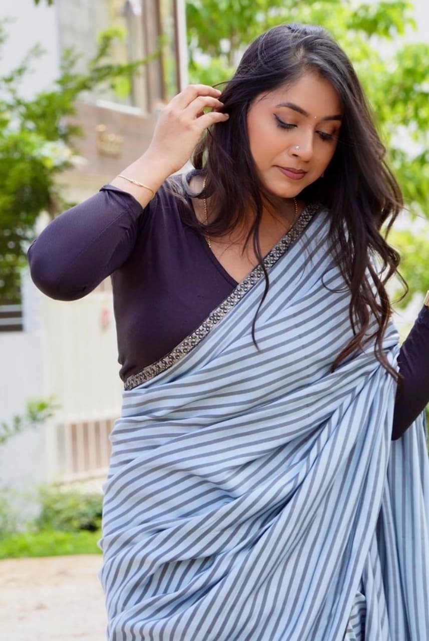 Taarini Sarees are specially curated by Prakruthi Rao ,fine fabric sarees , minimalist party wears , fusion of tradition and modernity. These sarees are super easy to drape . Melts on your body ❤️