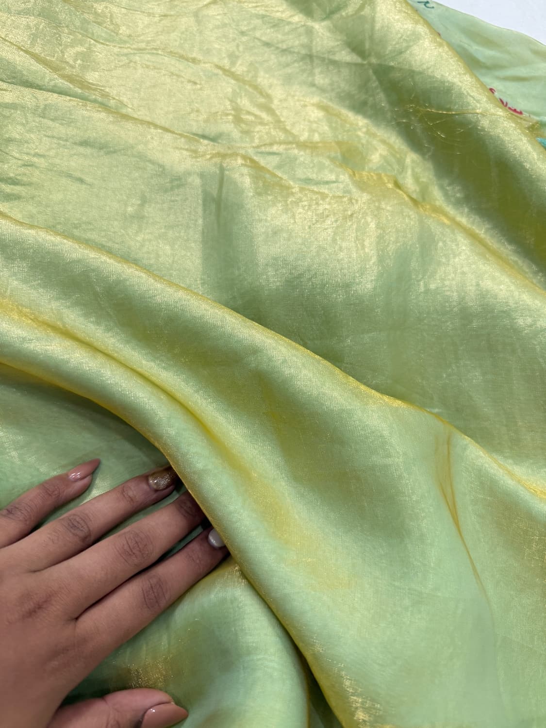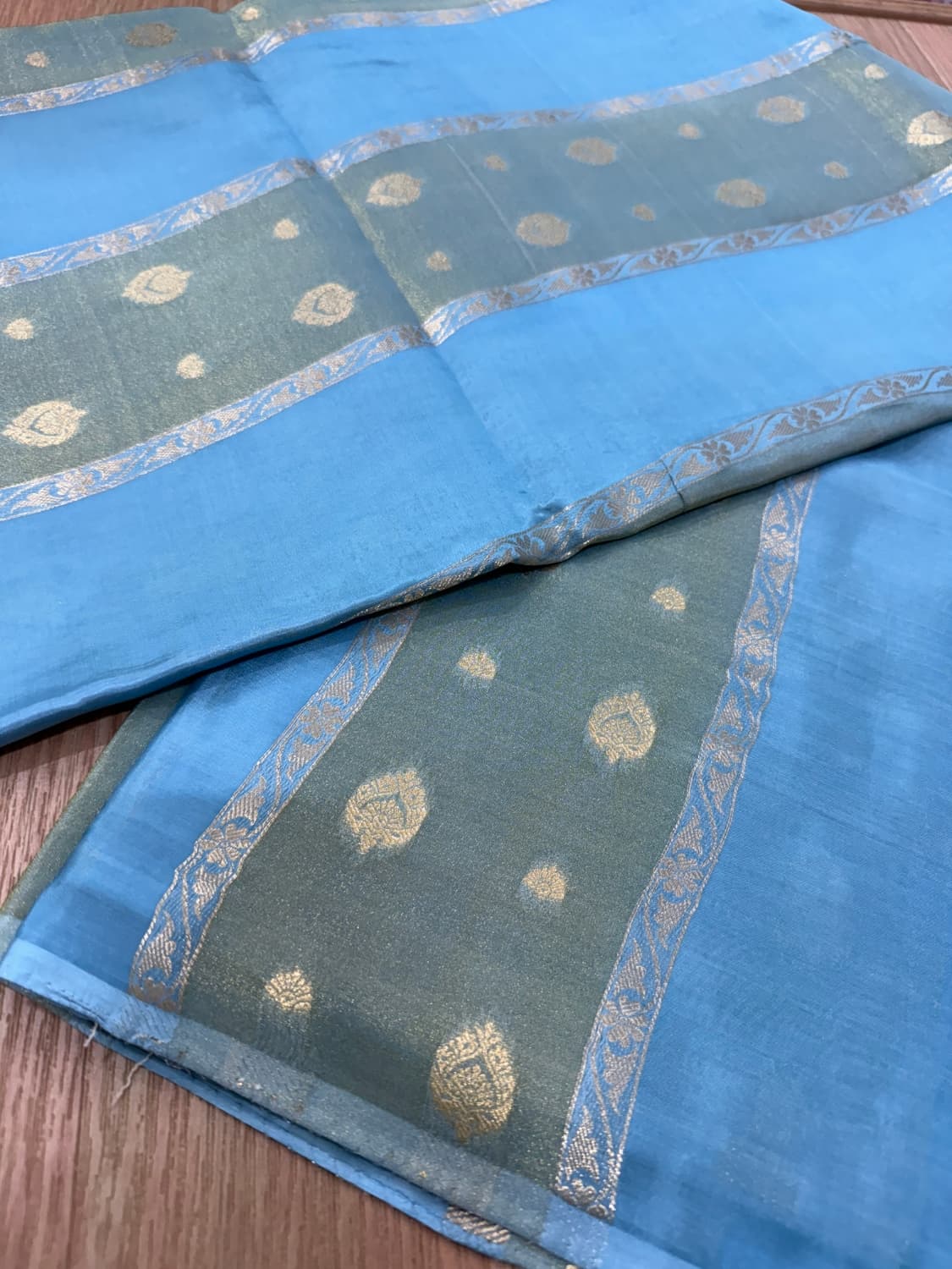 Pistachio with gold dual tone saree