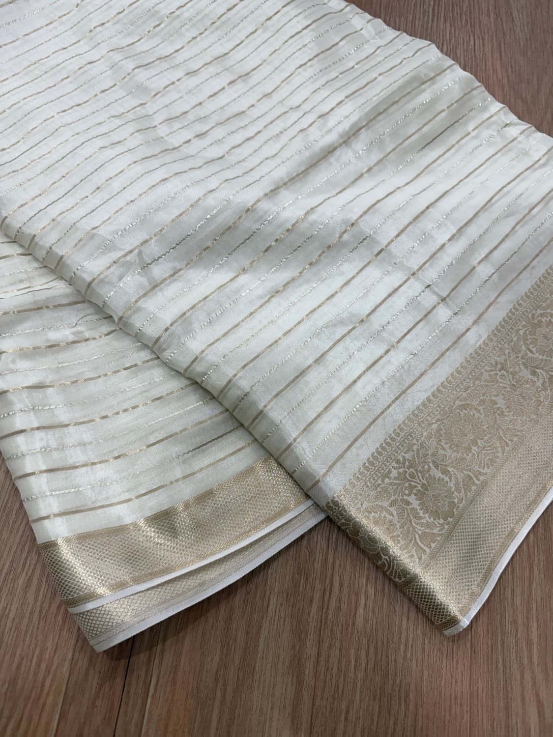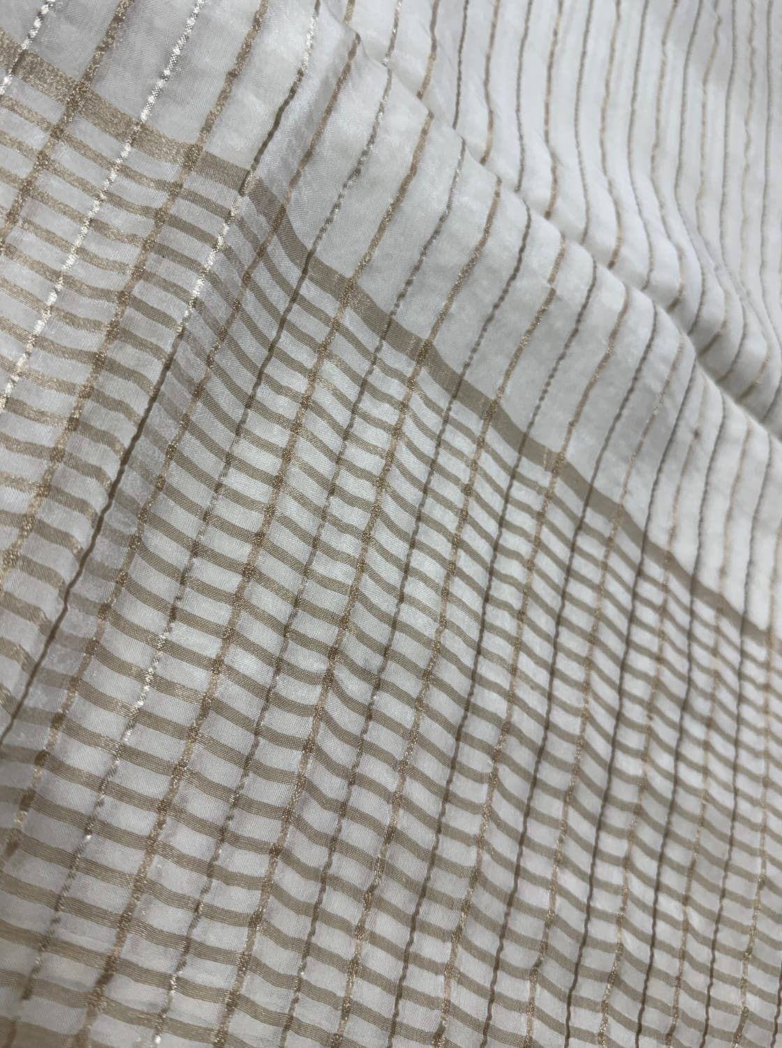 Fabric - space silk Super soft, glides on body 5.5 mtrs Styling tip - Pair it with our natural crepe blouse piece . Washcare -handwash, first wash with rock salt diluted water . SOLD