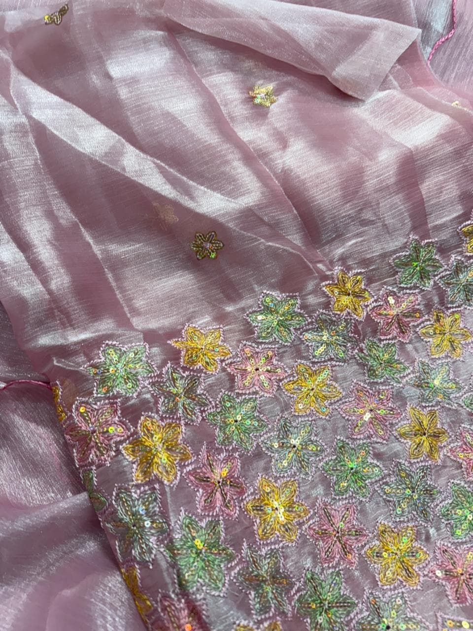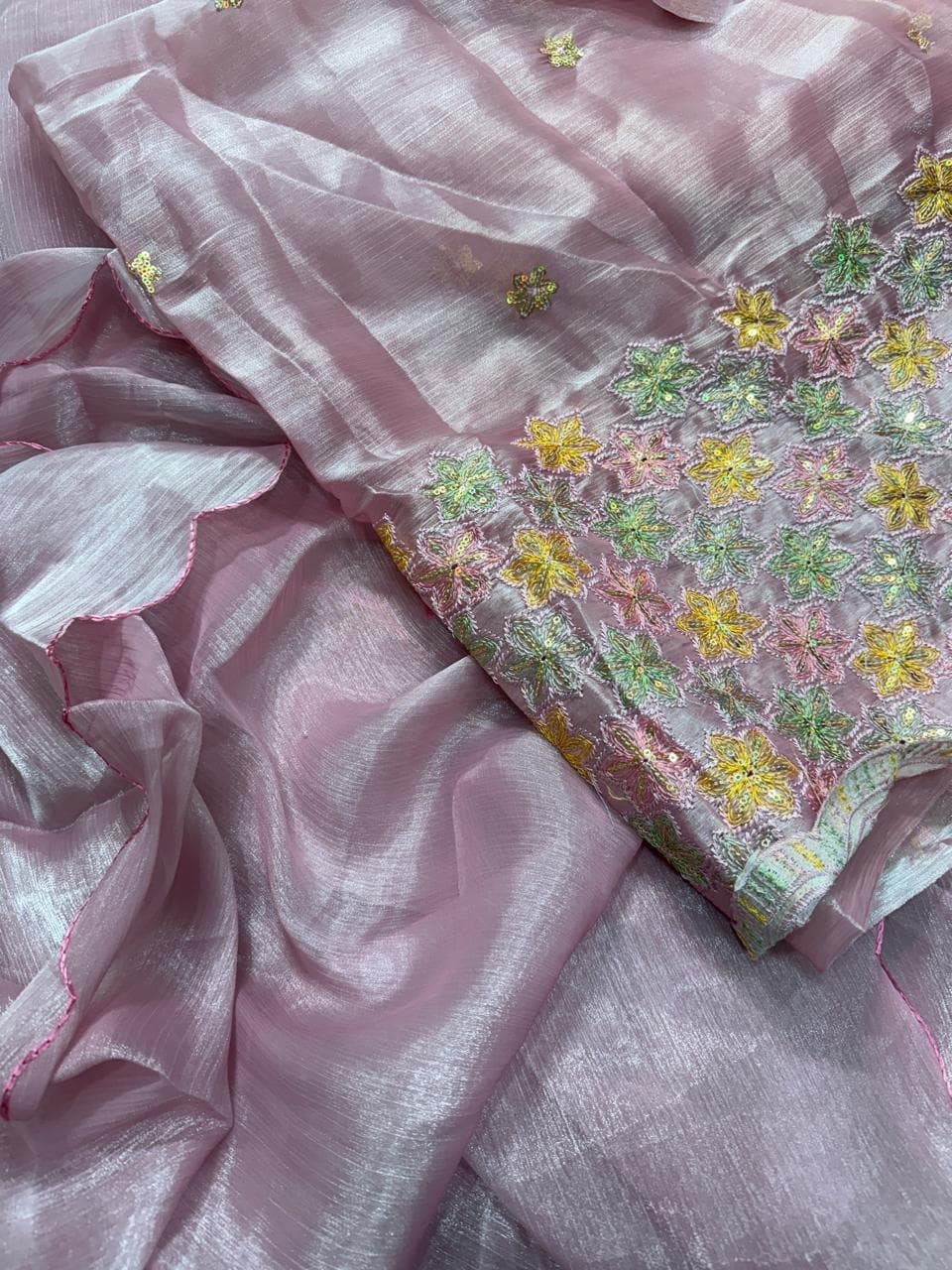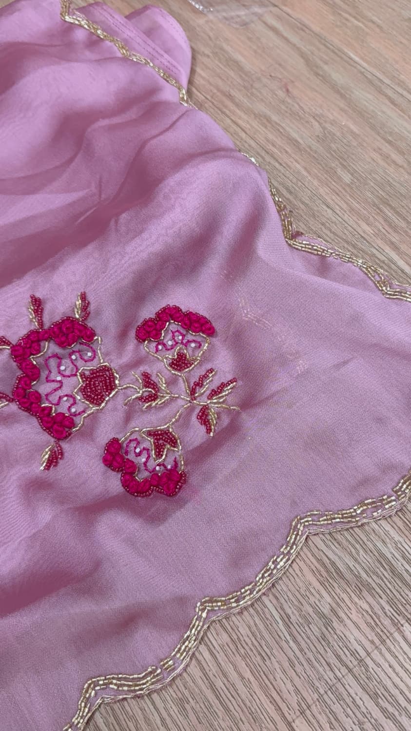 Fabric - Organza Color - baby pink Border - scallop thread work Blouse - embroidery blouse Free shipping 2 in stock Dispatch in 7-14 working days
