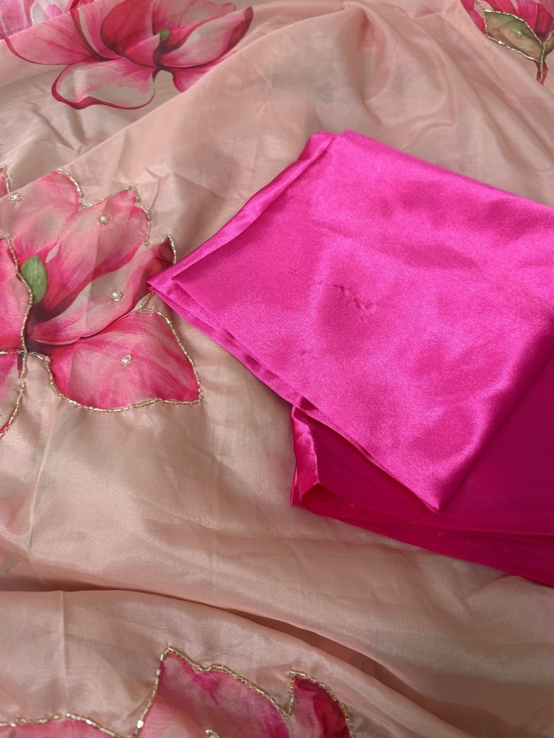 Fabric - soft organza Color - peach Blouse- pink satin Free shipping Dispatch 7 to 14 working days
