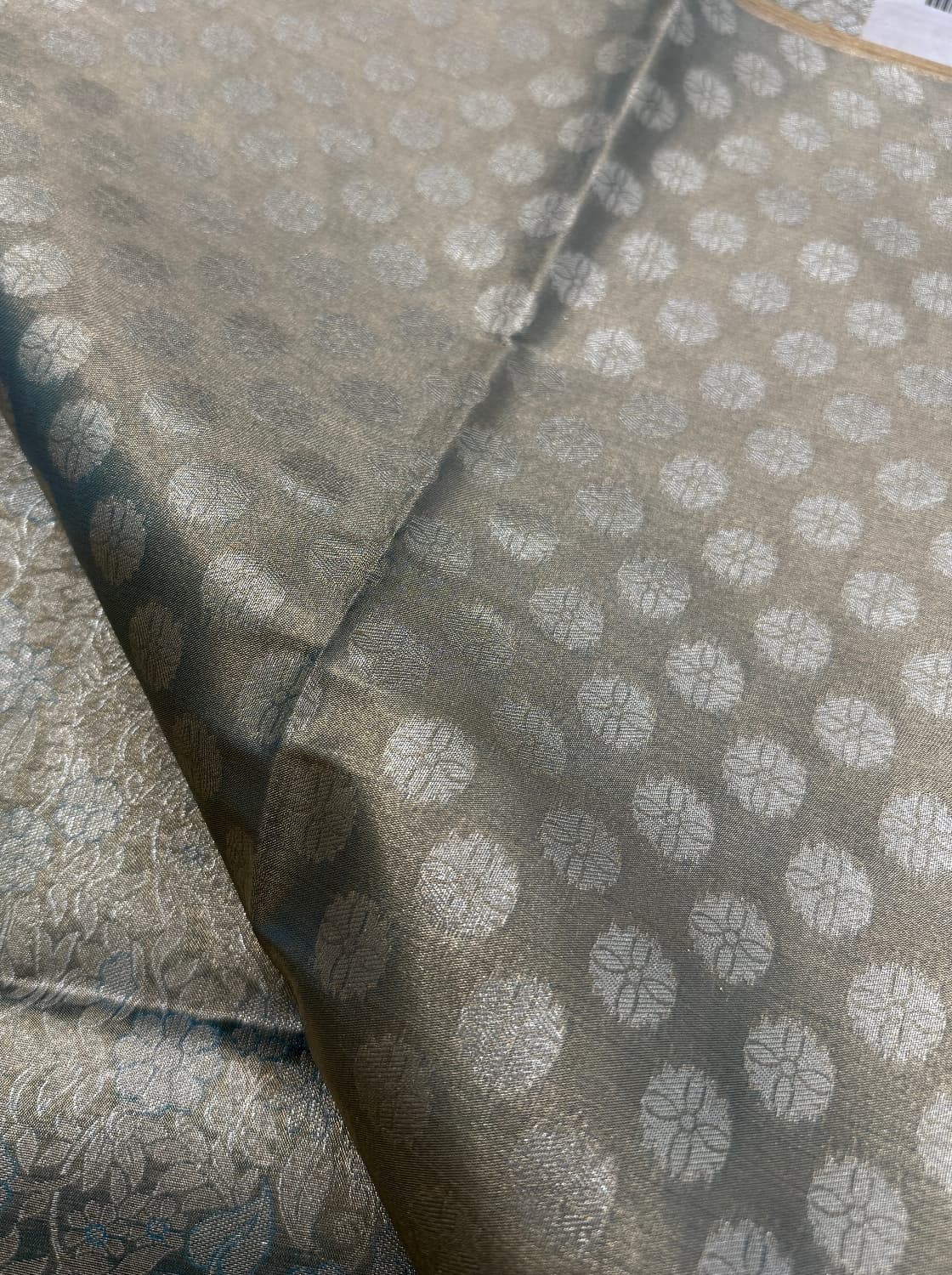 Fabric - Super soft tissue ( full saree zari) Color - Pistachio Border - zari Blouse - butta Pleates will flow the way you tell 1 in stock Dispatch 7 -14 working days